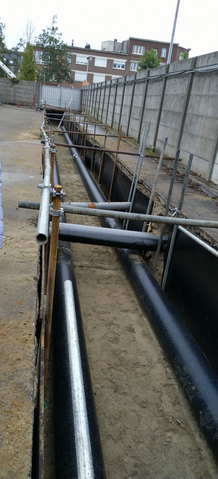 Momenteel werken we op drie plaatsen. In de Ridder Van Ranstlei zijn we recent gestart met voorbereidende werken, om daarna twee boringen uit te voeren. In de Lieven Gevaertstraat en aan de Agfa-Gevaert site 1 zijn de werken aan het warmtenet de distributiecentrale al een tijdje bezig. Op het industrieterrein van Opnieuw en Co, Papayoe, Olijfje en Triakon worden de leidingen aan elkaar gelast die we zullen plaatsen in de boring van de Vredebaan.